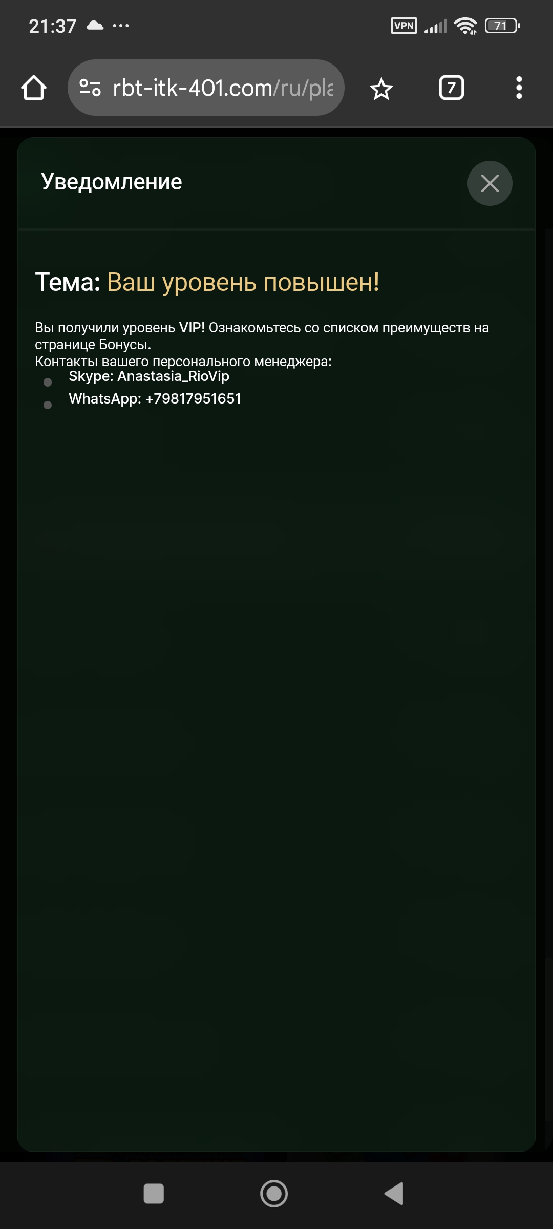 @rioaffiliates​ Уважаемый представитель вы меня игнорируйте или как понять?Пропускаете мои комменты между ушей.Или мой вопрос не интересен вам?Будьте добры ответить на мой вопрос.