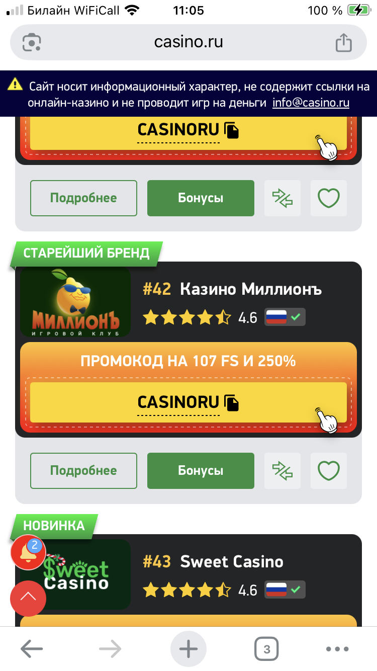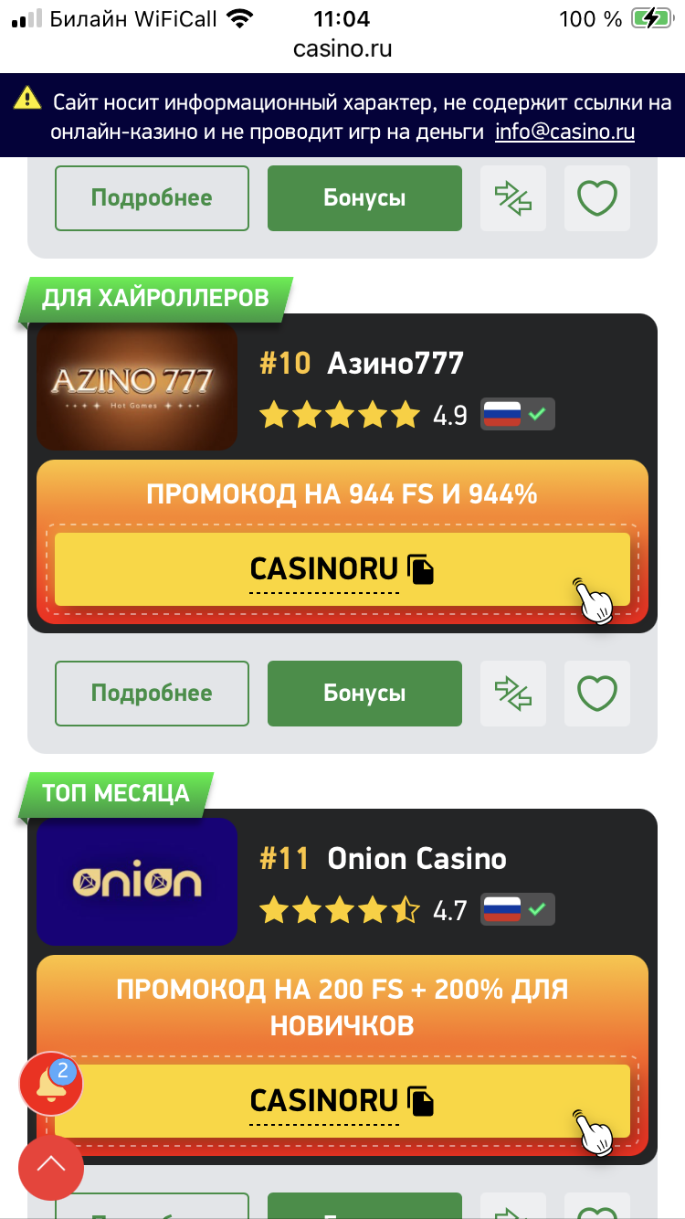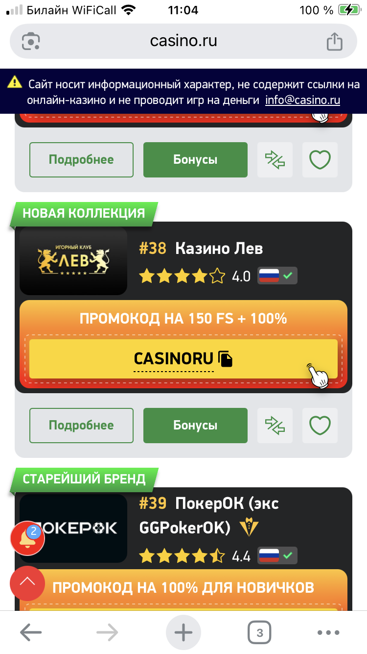 Да, казино ру! Ну они хитрые!!!! Раздел лучших есть только наземных:)))))) А онлайн просто список, но идёт то он сверху вниз ⬇️ от топа! Формируется то по звёздам, то есть баллы те же!