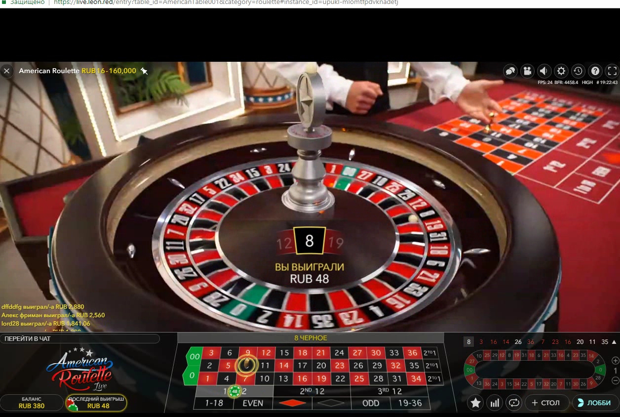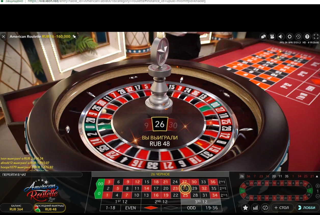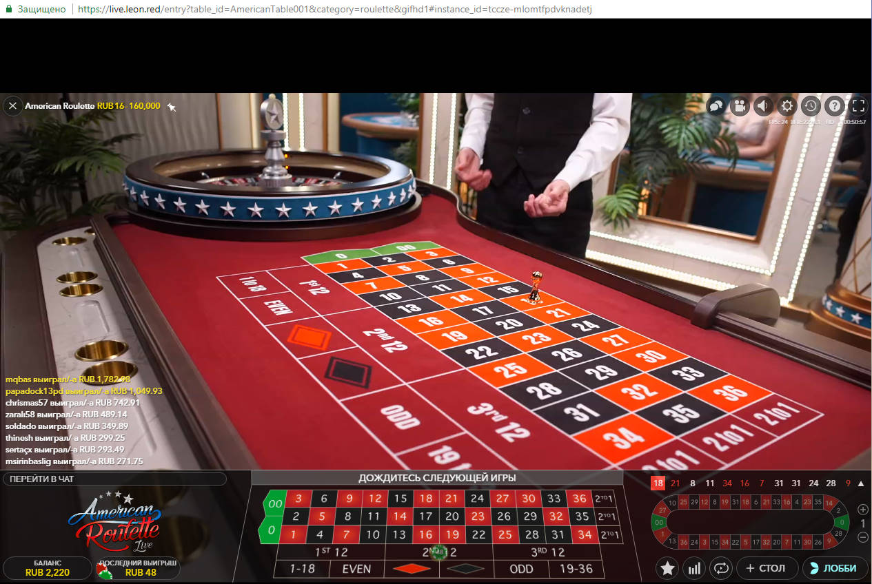 Заглянул в лайв рулетку американку и сделал несколько ударов по минимальной ставке… В итоге удвоил депозит через рулетку с дилерами в БК «Леон»