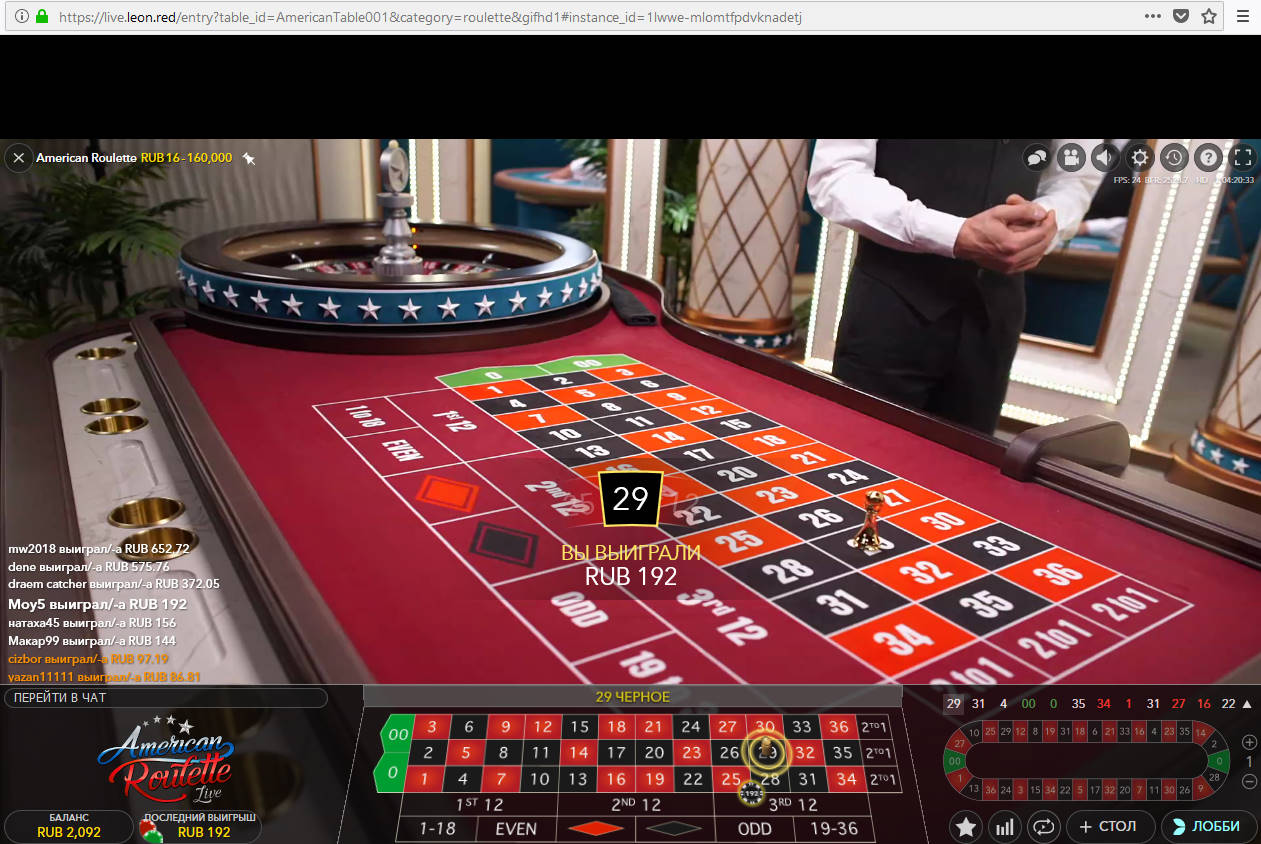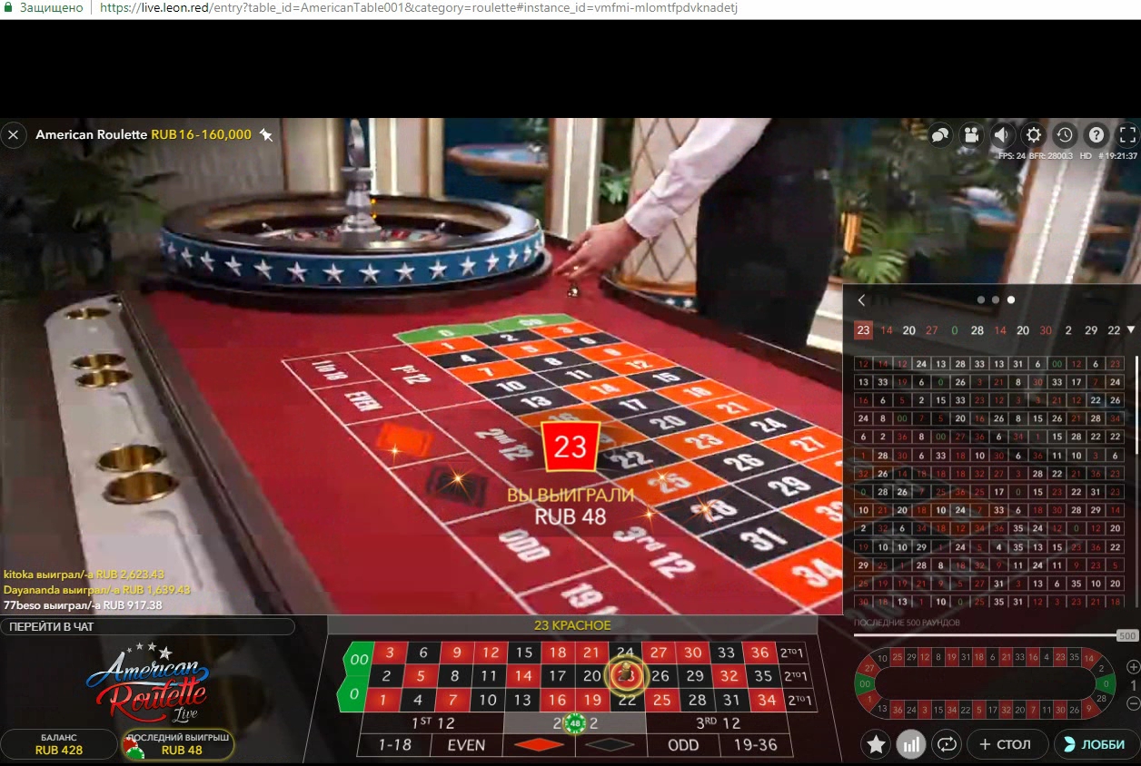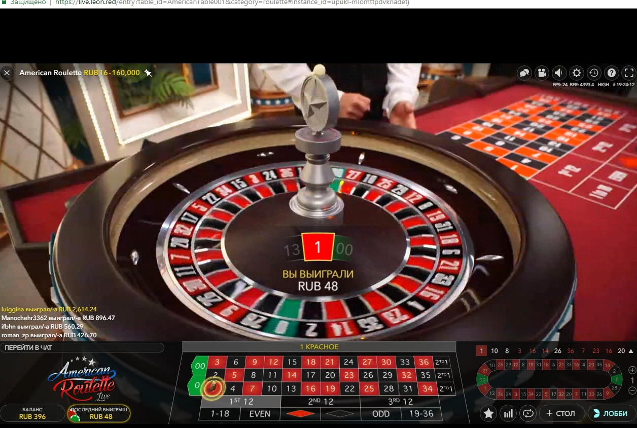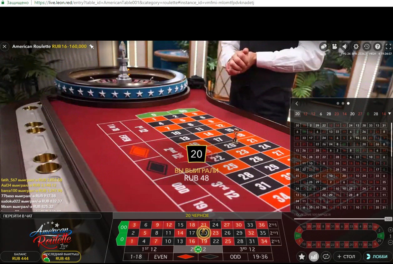 Заглянул в лайв рулетку американку и сделал несколько ударов по минимальной ставке… В итоге удвоил депозит через рулетку с дилерами в БК «Леон»