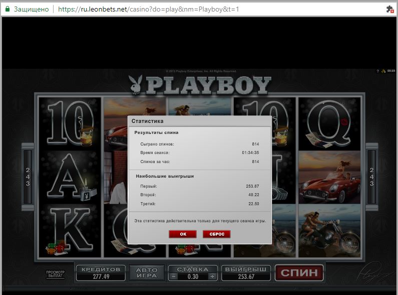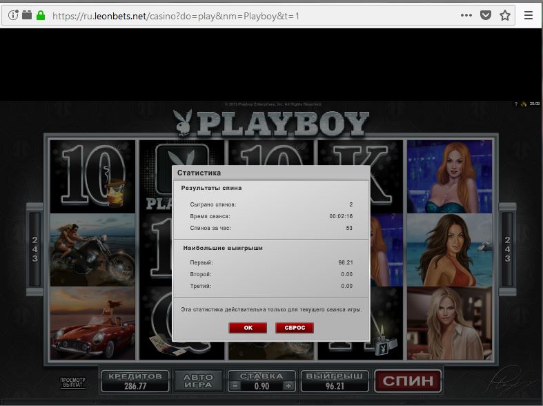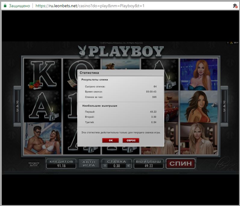 Мне однозначно понравился этот сайт, как я понял все игры лицензионные и проверяются eGOGRA… Покручиваю слот «ПлейБой» иногда повышая ставку вот и седня со второго спина насыпало немного. Хотелось бы увидеть 4 ваилда а может и …) Ну а пока ставка 90 коп коэф Х>100