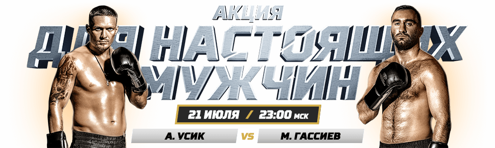 Главное событие года в мире бокса состоится 21 июля! В финале всемирной суперсерии украинец Александр Усик сразится с россиянином Муратом Гассиевым. Оба сильнейших «крузера» современности еще никогда не испытывали горечь поражения. Однако победит только один. Захватывающий поединок станет еще интереснее, ведь мы проводим акцию для настоящих мужчин и разыгрываем более 100 000 рублей!