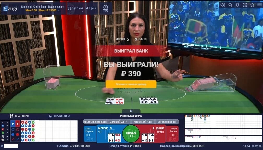 Cедня заглянул уже еще в лайв игры — в Баккару с дилером, ато в рулетке повис на одной сумме и ни туда и ни сюда(плюс минус 10р). Короче, сделал ставку сотку и попал… Класс!)