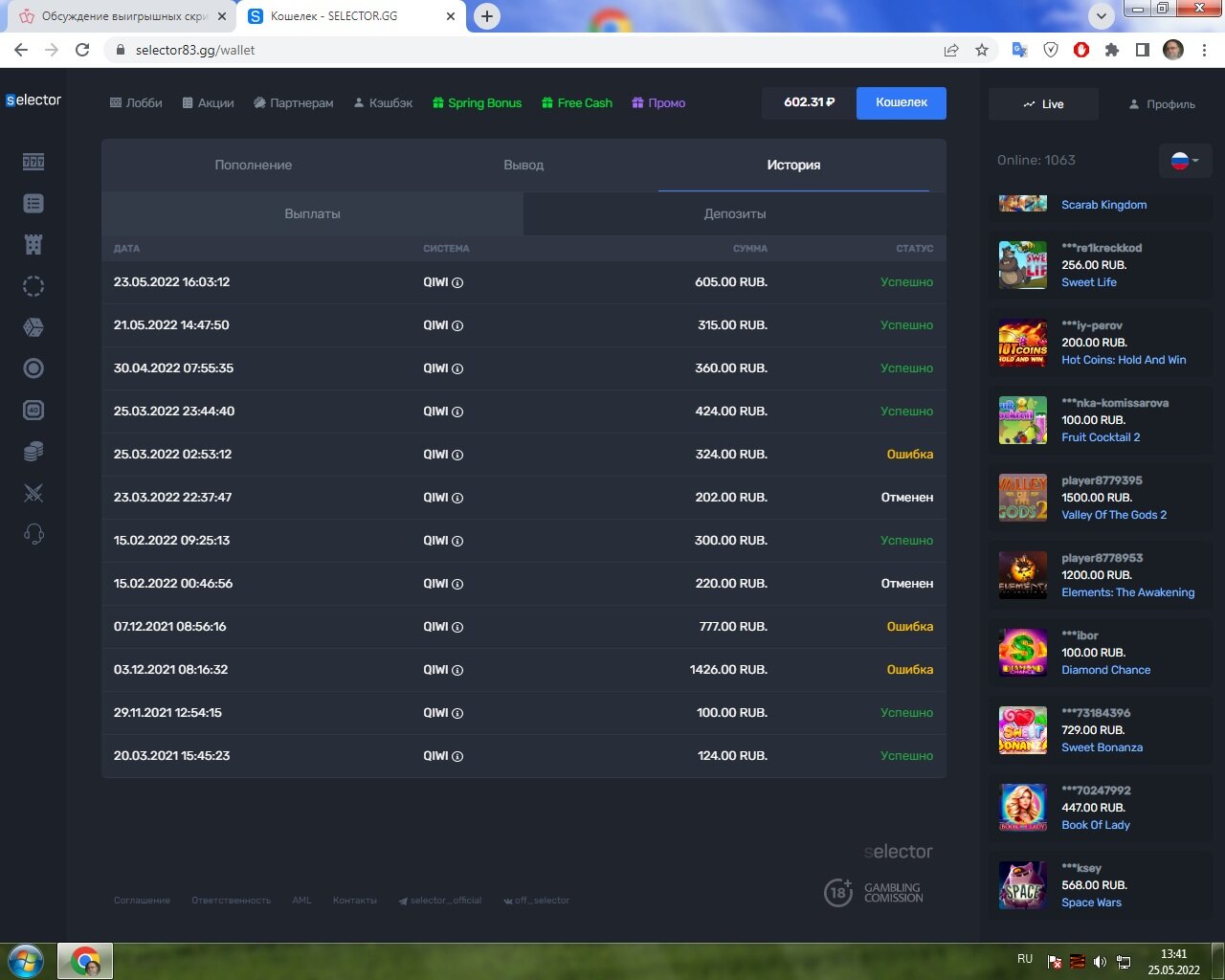 Я там по крупному не играю. 300 р деп и вывод 600р. В последнее время депы разные у них с Киви. Надо ловить момент. С утра 100р, а вечером 500 бывает. 100-300 500р.