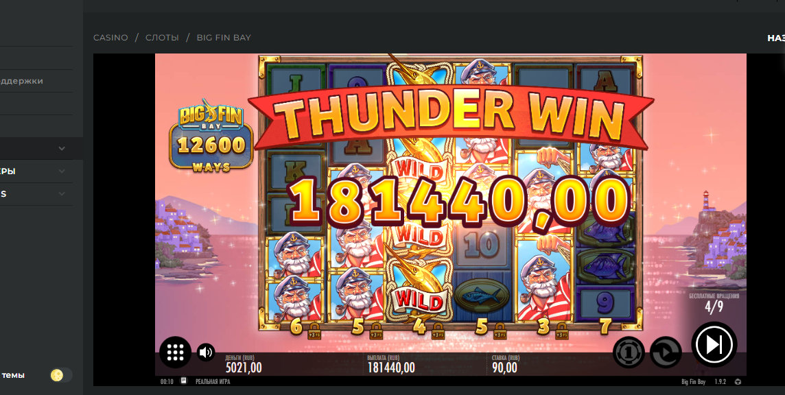 x2016, BigFin, Betunlim casino. На самом деле сам бонус оставшимися 5 спинами где-то на 10 тыс. больше дал. Скриншот только этого спина сделал.