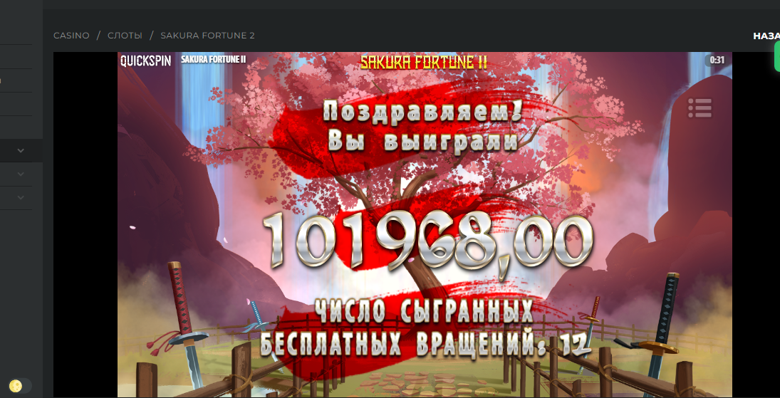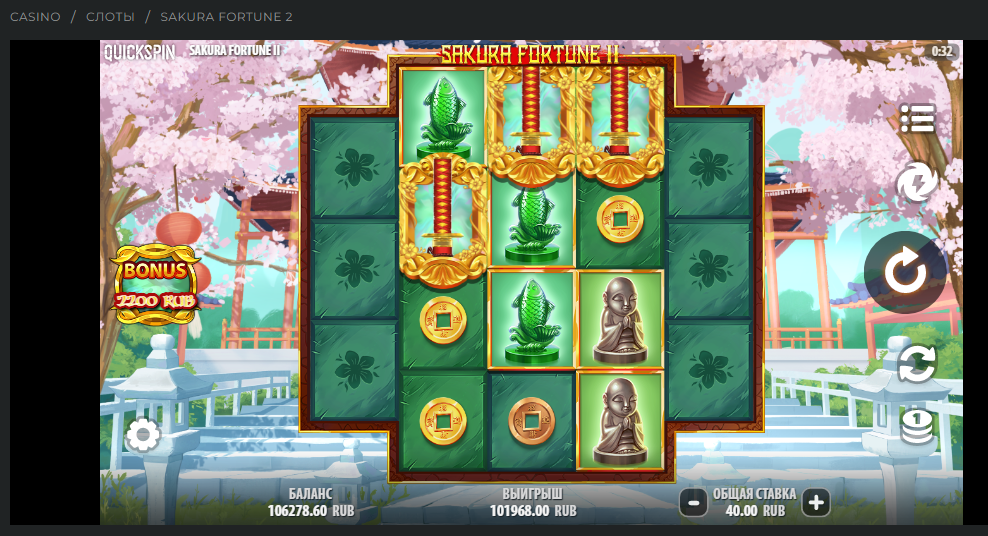 x2549, Betunlim casino, Quickspin, Sakura Fortune2. Там оказывается в этом слоте если в бонусной ставит 3 вилда, то все выигрыши х3.
