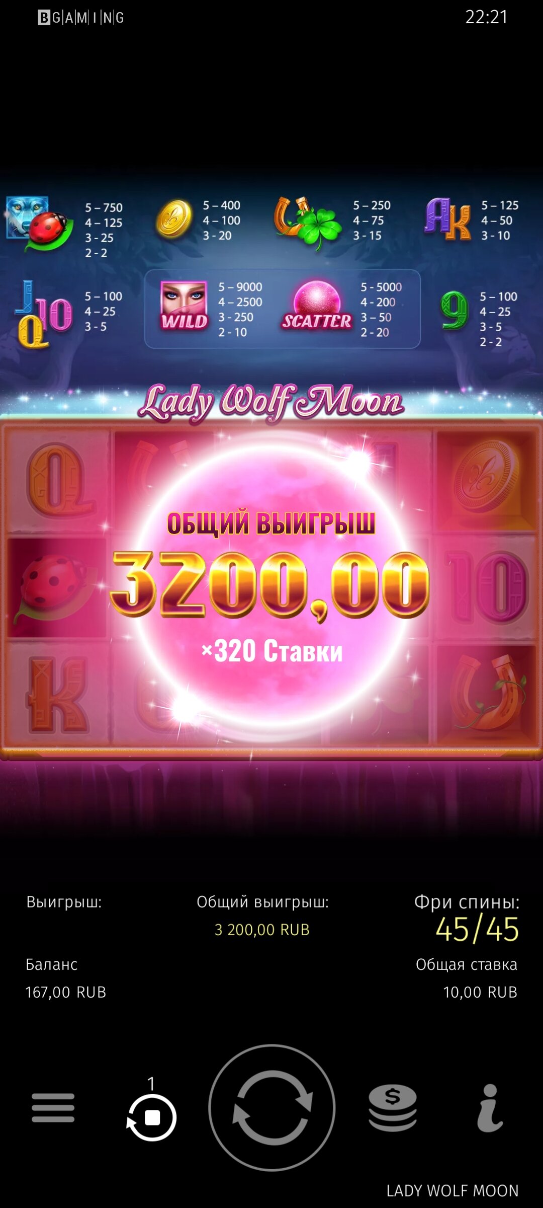 Да, кстати я с ветки скринов о ней и узнал, до этого и не в курсе был, что есть такой слот. Играю в него, так как люблю функцию липких вайлдов и то что он разрешен для отмыва вагера.