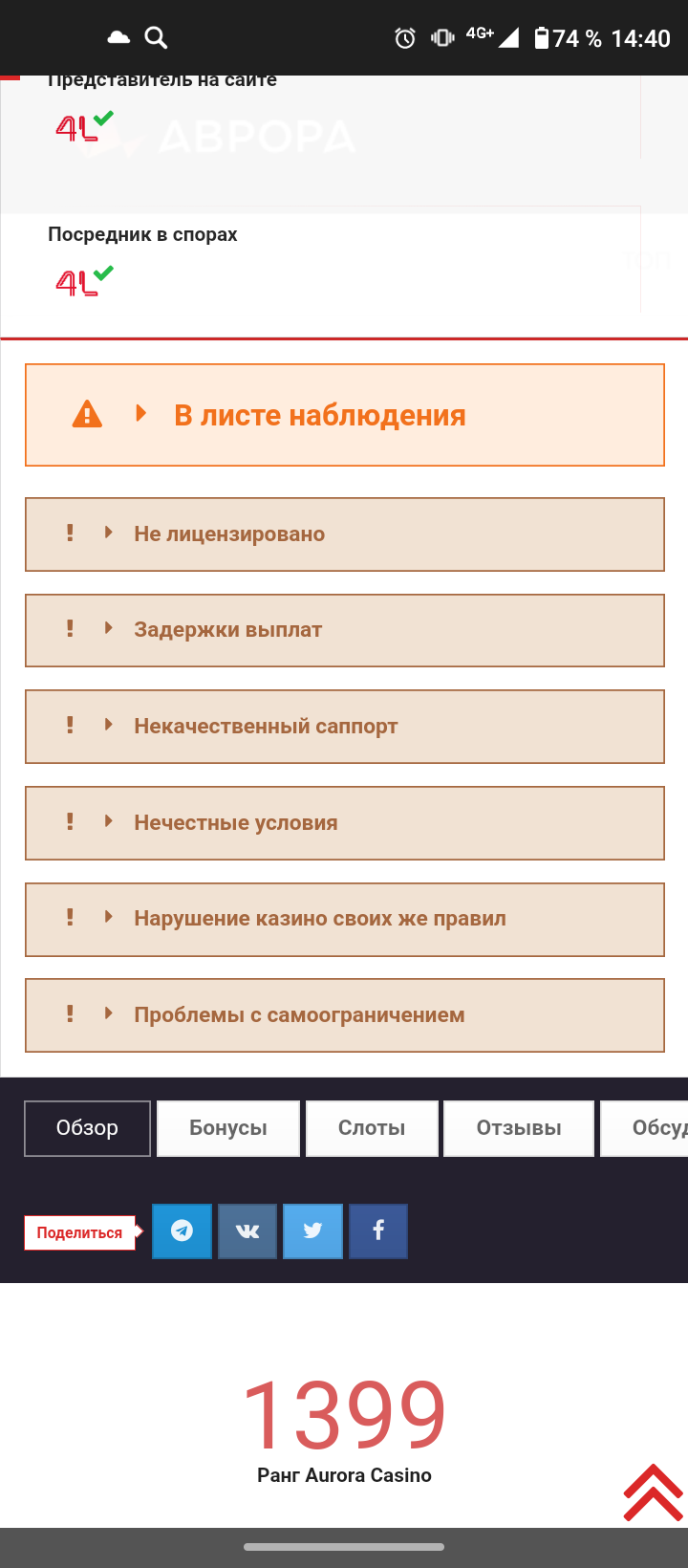 Мне кажется листа наблюдения заслуживают гораздо больше другие казино, но не Аврора и чемпион это точно, хотя латесту видней, что они там натворили, эти казики:))