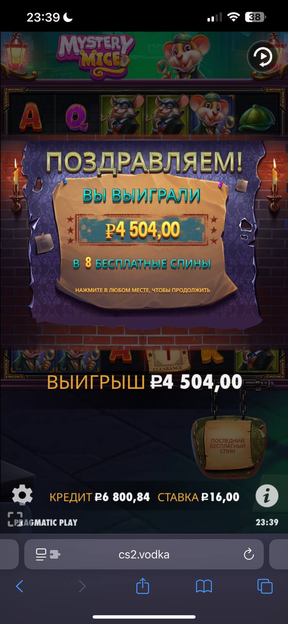 Поздравляю с выигрышем! С минимального депчика, с «сотки» рублями словить в казино хорошую бонуску, это просто «волшебно») Фарт наше ВСЕ!