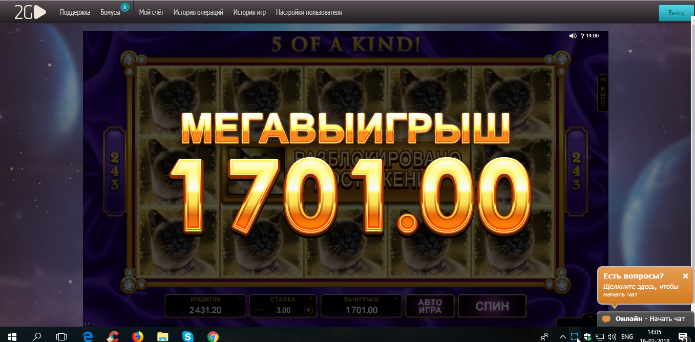 Душевно. Всегда хотел в этом слоте полянку котов словить. Крутил в своё время много, но не судьба. Завидую (по белому) и поздравляю))