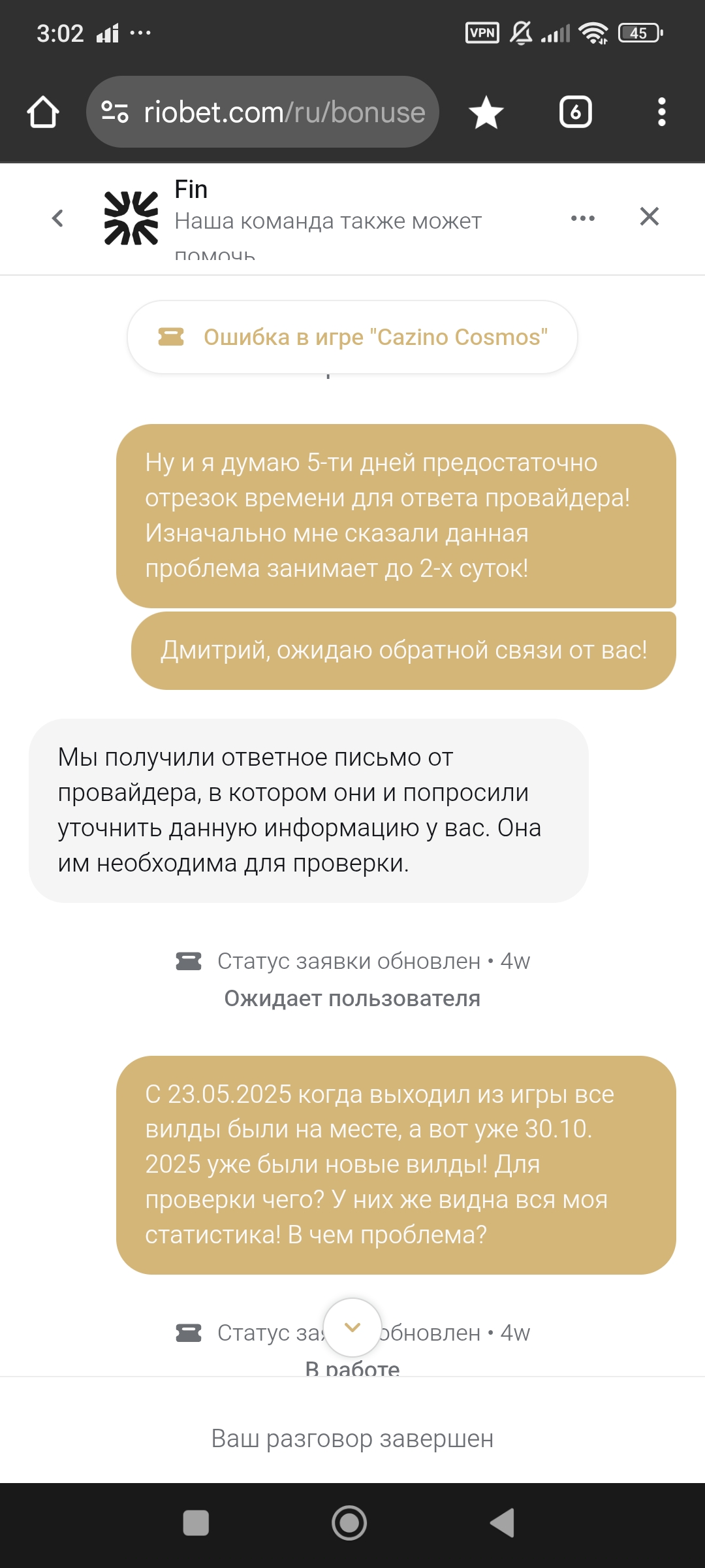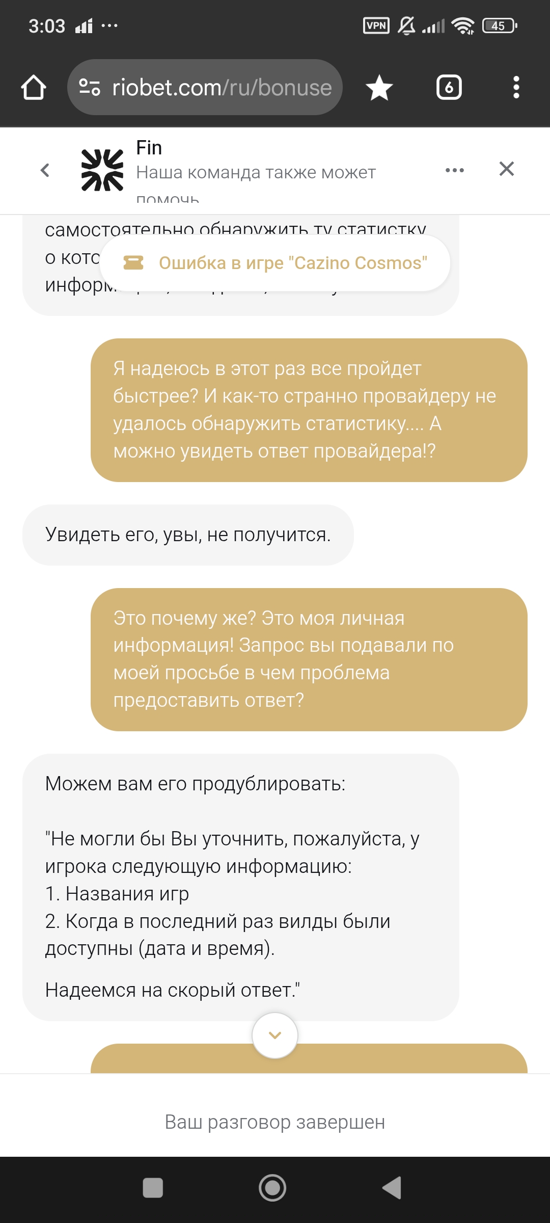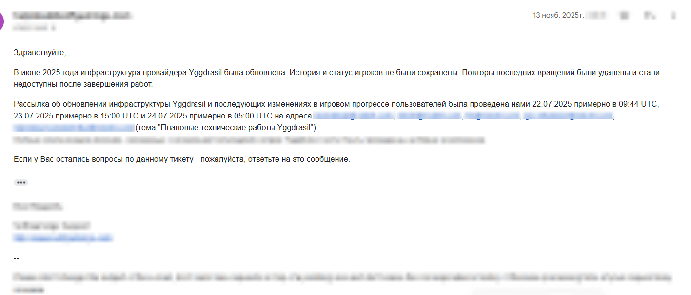 @sharovoi13, по вашим комментариям создаётся впечатление, что операторы «придумывают» ответы провайдера. Уточним: проверка технических обращений без участия провайдера невозможна в принципе – у оператора нет доступа ни к математике игры, ни к серверной статистике. Поэтому отправка запроса провайдеру – это обязательная часть процедуры, а не жест «для вида».