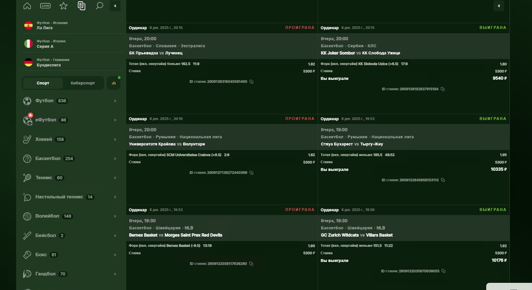 Вот возьмем мои ставки со скриншота, которые выиграли.