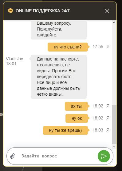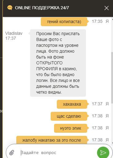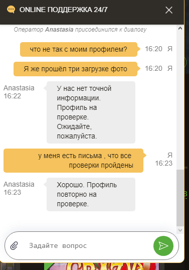 ) в чате переобулись и запросили на фоне профиля селфи. И то 4-ого раза Вы вообще ПФ или Слоттика?