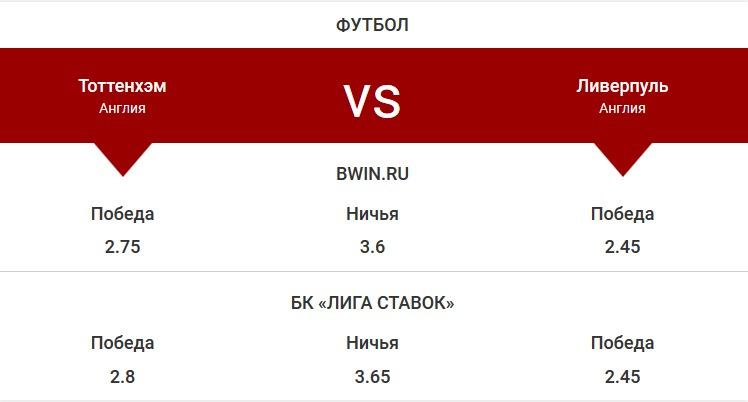 Букмекерские конторы с небольшим перевесом в матче «Тоттенхэм» – «Ливерпуль» прогнозируют победу гостей. Мерсисайдцы выглядят очень уверенно и пока идут без потерь очков. В тоже время «шпоры» после разгромной победы над « Манчестер Юнайтед » 3:0 уступили на выезде «Уотфорду».