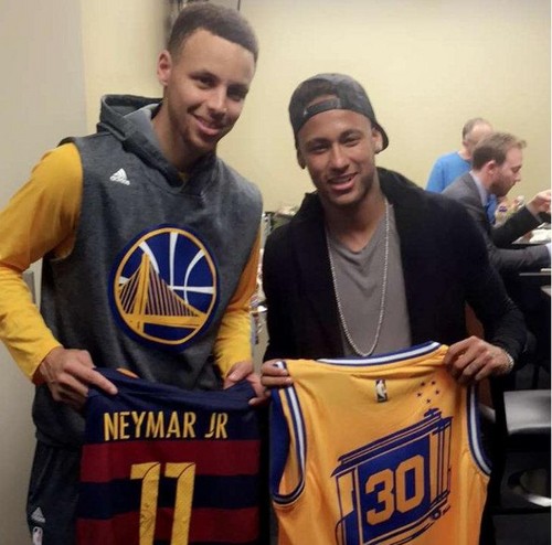 Футболист «ПСЖ» Неймар и баскетболист «Голден Стэйт» Стефан Карривстретились в Париже. Игроки обменялись игровыми футболками и сделали несколько совместных фото.