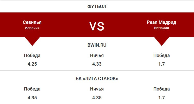 Букмекерские конторы в матче «Севилья» – «Реал» прогнозируют победу гостей. Команда под руководством Лопетеги обладает более высоким классом и выглядит более собранной, чем нестабильная «Севилья».