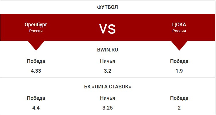 «Оренбург» – ЦСКА 28 сентября: прогноз и коэффициенты букмекеров
