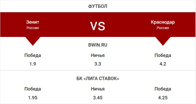 Букмекерские конторы считают, что в матче «Зенит» – «Краснодар» более вероятна победа питерского клуба. Несмотря на форму, которую демонстрируют «черно-зеленые», в своих стенах «Зенит» не раз доказывал мощь.