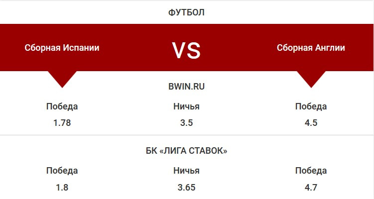 Прогноз букмекеров на матч Испания – Англия 15 октября