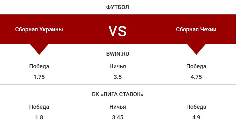 Букмекерские конторы считают фаворитом в предстоявшем матче сборную Украины. Чехии будет сложно противостоять сыгранной украинской сборной на ее поле, где она стабильно проводит сильные матчи.