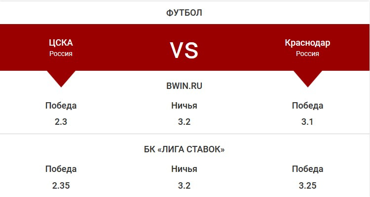 Прогнозы букмекеров на матч ЦСКА – «Краснодар»