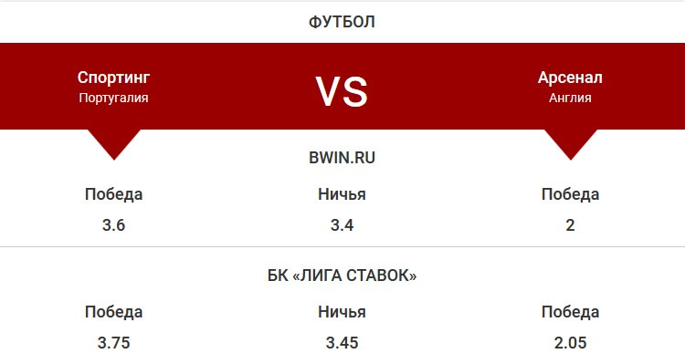 Прогнозы букмекеров на матч «Спортинг» – «Арсенал» 25 октября