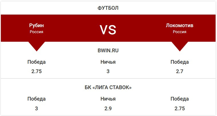 Прогноз букмекеров на матч «Рубин» – «Локомотив» 11 ноября