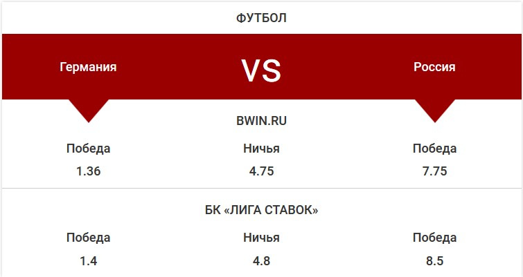Букмекерские конторы считают, что именно хозяева будут фаворитами в предстоящем матче Германия – Россия. Несмотря на определенный кризис, немцы остаются грозным соперником с высококлассным подбором игроков. Впрочем, нельзя исключать и другого исхода, ведь россияне уже показали, что умеют удивлять.