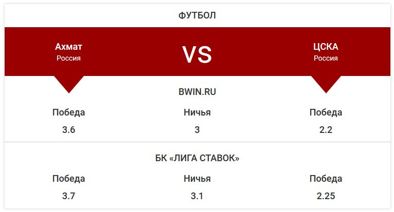 Прогноз букмекеров на матч «Ахмат» – ЦСКА