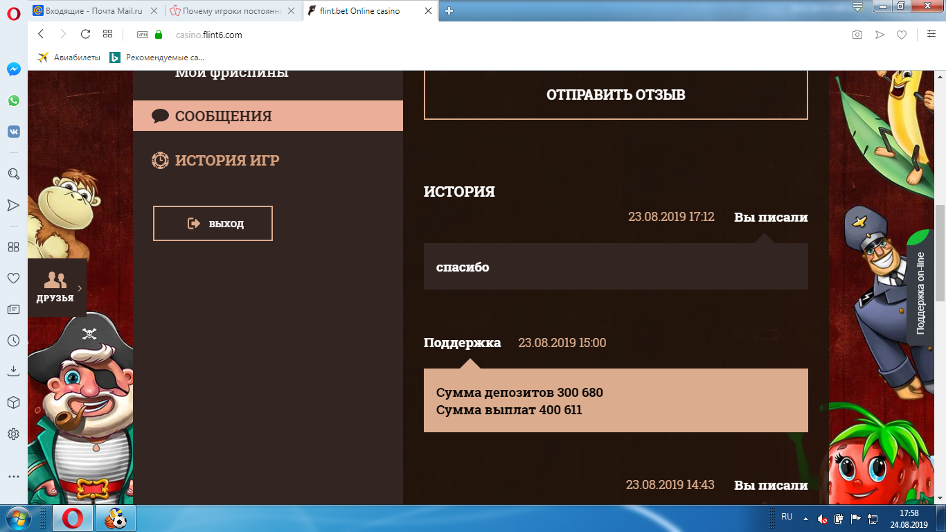 То что Флинт казино крутит отдачу об этом сомнений не нужно сам факт игры говорит за себя,если там играете то играйте не больше 10 рублей а то вообще старайтесь там не играть,можете проиграть всё!