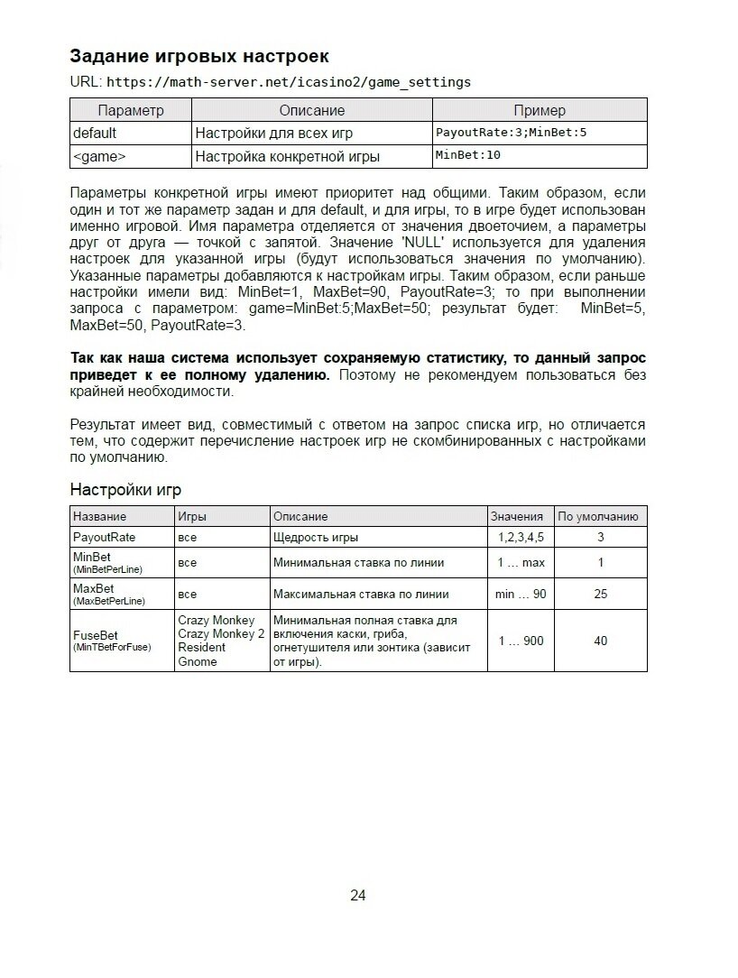 Я Вас категорически приветствую ! Вот Вам инфа с сайта разработчика — даю ссылку на документ в PDF формате сайт : . Ниже приведу скриншот с описанием настроек софта( 24 страница — просто слишком много информации , кому интересно скачайте файл с офф сайта ) . Кстати на Латесте в топе рейтинга казино имеющие у себя ассортимент игр данного провайдера. Чуть позже выложу на форуме исследование лицензий казино таких проектов как Thepogg.com и Casinomeister.com Также они разобрали схему подключения скриптового софта (вычислили полные пути подключения от серверов до конкретных казино) казино серии Вулкан и 1xBet ( А тут как раз наш топ рейтинга — дочерние казино данной шараги — 1xSlots и JVspin и Casino-Z ). Даю ссыль на статью правда на англ. языке. ( )