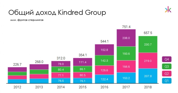 Доходы Kindred Group в 2012-2018 годах. Данные из финансового отчета Kindred.