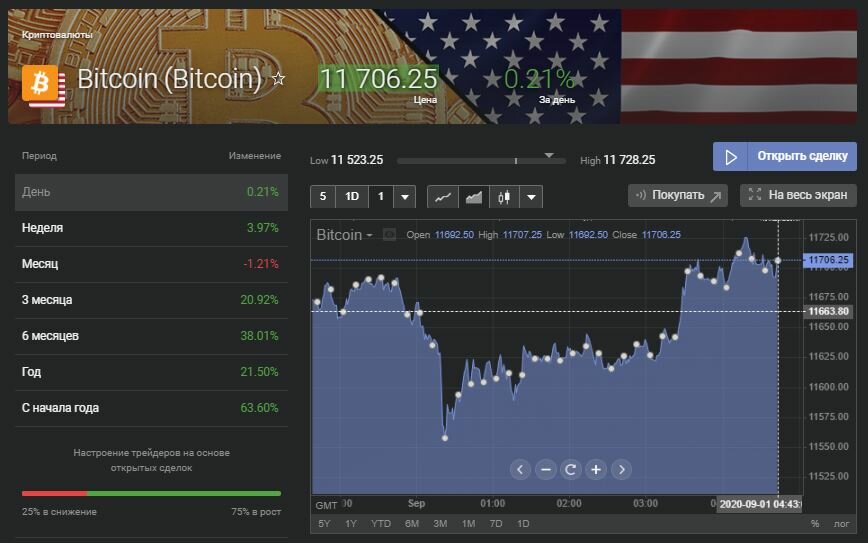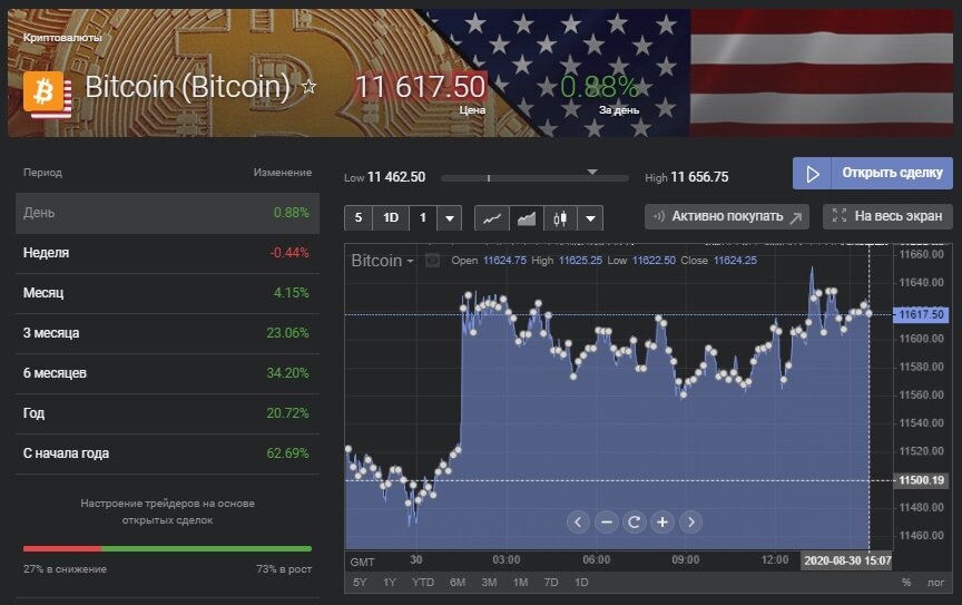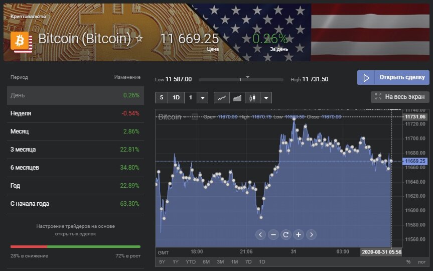 В понедельник, 31 августа, цена биткоина растет. На 09:35 МСК первая криптовалюта торгуется на уровне $11 681,93 (+0,62%), по данным CoinMarketCap. Ранее биткоин ненадолго превысил $11 700.