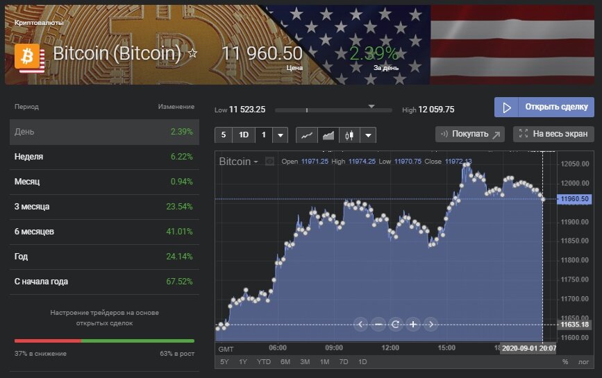 «Вчера биткоин вырос на 2,3%, эфир (криптовалюта ETH — ред.) почти на 10%. С утра биткоин торгуется с небольшим снижением, около 11800 долларов», — сказал РИА Новости независимый эксперт Мансур Гусейнов.