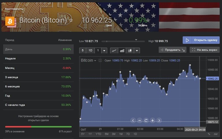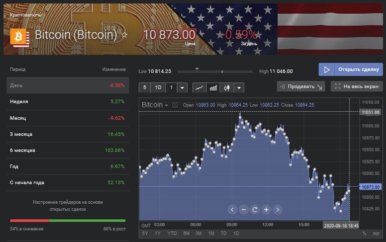 В пятницу, 18 сентября, курс биткоина поднялся выше отметки в $11 000. Два дня назад, вечером 16 сентября, стоимость монеты тестировала этот уровень, но не смогла преодолеть, поэтому откатилась ниже $10 800. За прошедшие сутки первая криптовалюта подорожала на 0,9%, с начала сентября — на 10%.