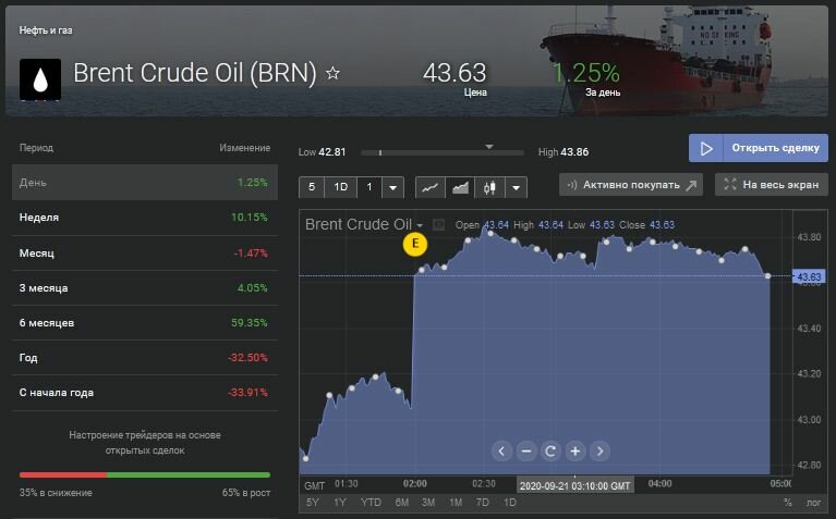 Четыре часа взад НЕФТЬ была 43,63 стала 42,86,