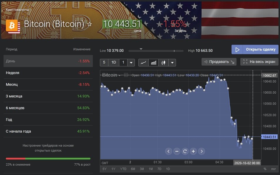 Котировки криптовалют и ведущих фондовых индексов США S&P 500 и Dow Jones опустились на 2-3%. Это произошло сразу после того, как президент США сообщил о положительном тесте на COVID-19.