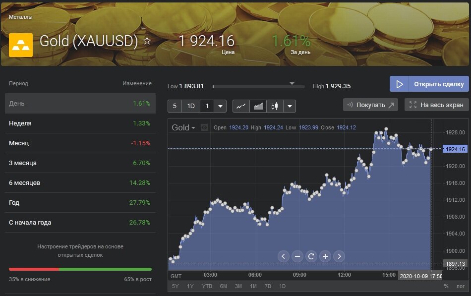 Золото поднимается выше 1920 года по мере дальнейшего ослабления доллара.