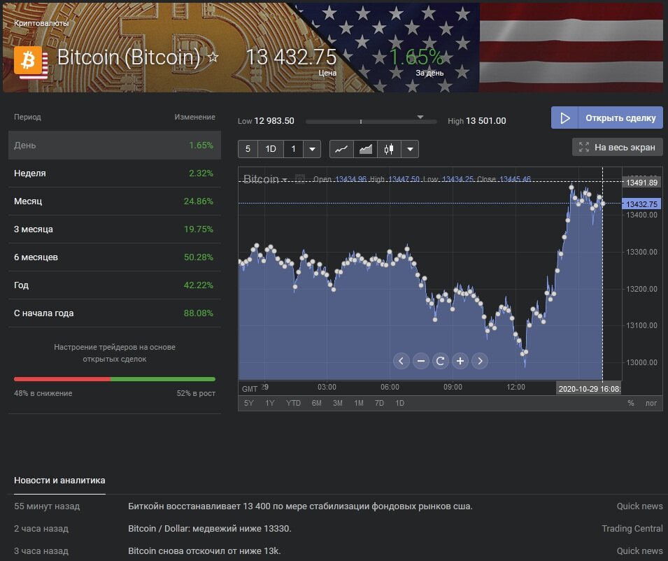 Биткойн восстанавливает 13 400 по мере стабилизации фондовых рынков сша.