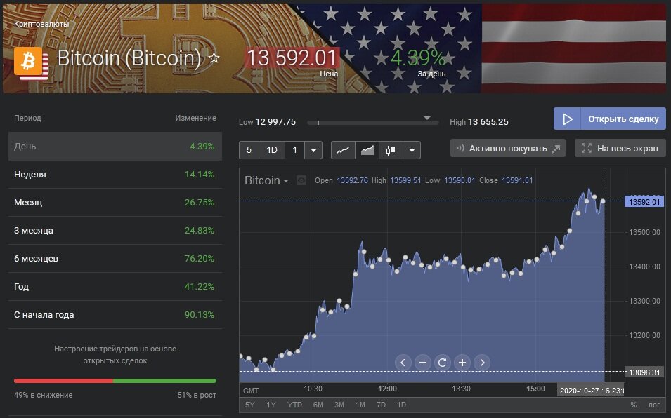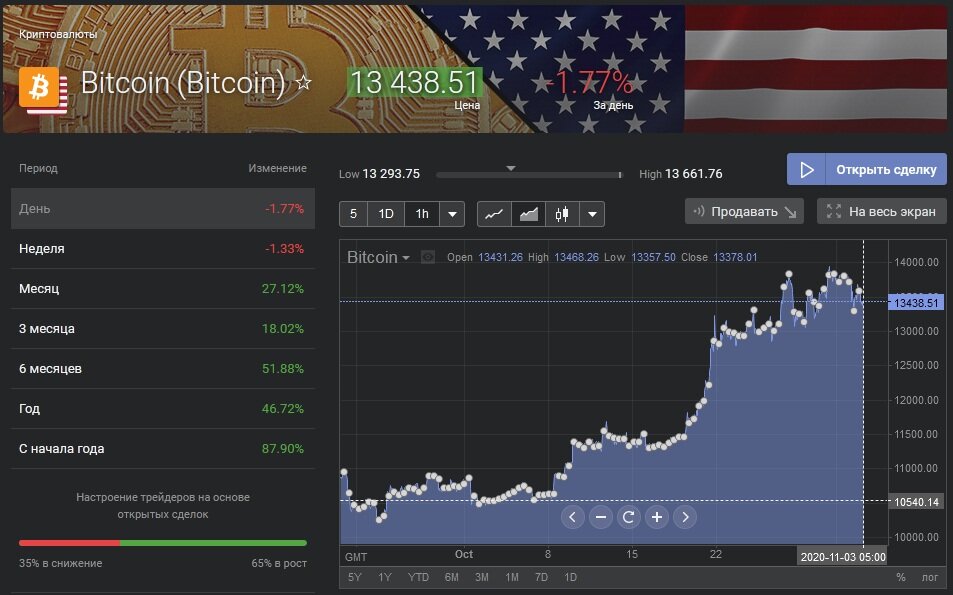 … Ну а щаз пока еще биток на отметке 13 500, но ему пророчат отскок на 13 900, поглядим шо будет после выборов Трам Трам тарарарам)