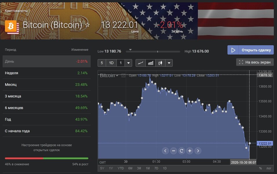 Cеводнешняя ночь была можно сказать повтором вчерашней, сначала биток взлетел до 13 700, а потом пошел откат.. Но не такой глубокий всего до 13 500…)