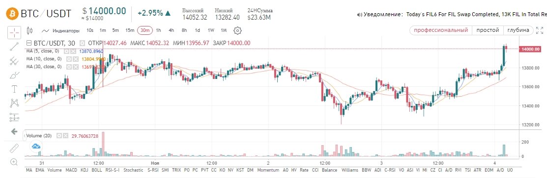 Bitcoin поднимается выше 14 000 в выходные дни торговли