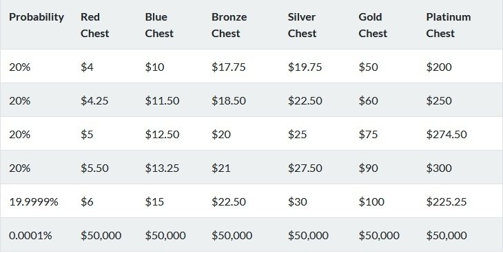 Вероятность выпадения призов из рождественских сундуков. Данные Pokerfuse
