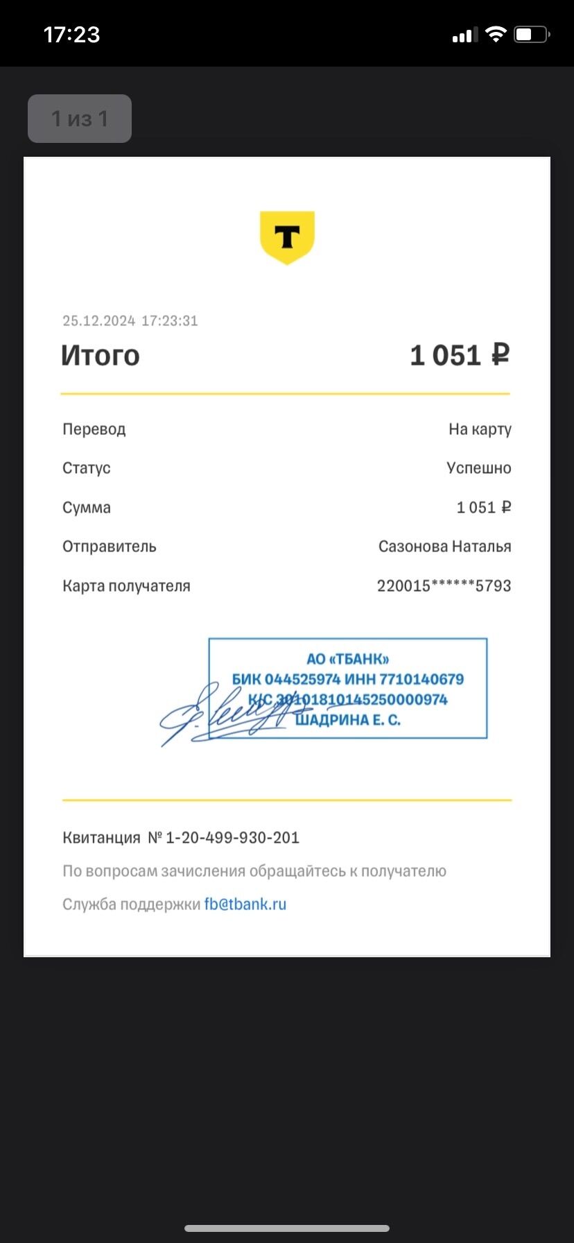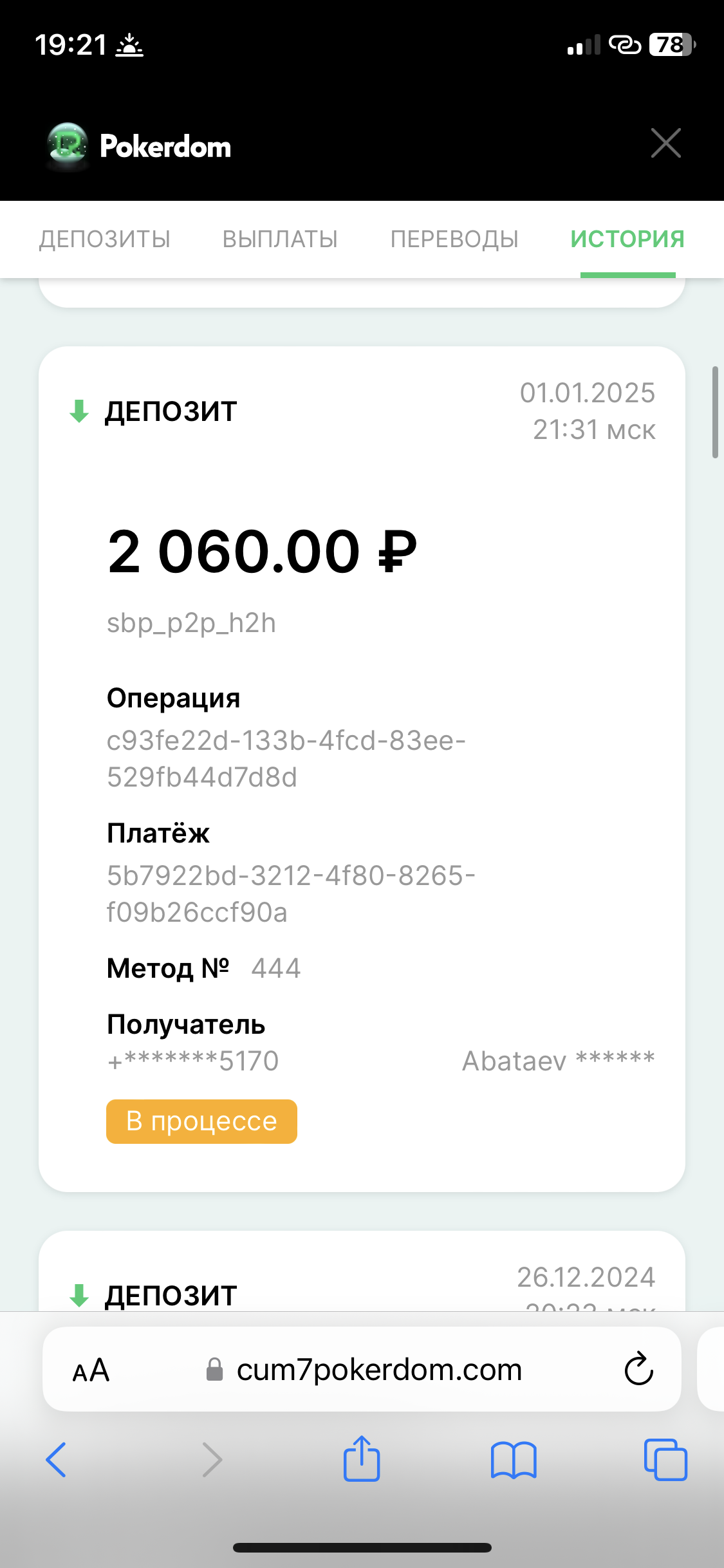 Сделала перевод на карту (причем неименную карту) из приложения. В итоге уже 3 дня висит статус «В процессе» .Прислала все скрины, все выписки с карты — толку ноль.