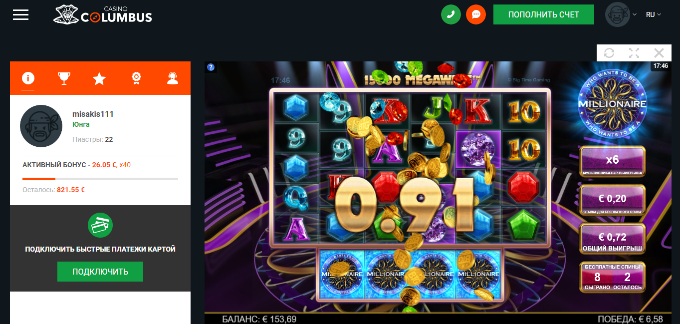 5. Принимаются скриншоты, которые полностью соответствуют правилам, а значит должны быть видны: размер ставки и выигрыш, логотип Casino Columbus, дата и время выигрыша. Соответственно, скриншоты с мобильной версии не принимаются. Можете использовать полную версию браузера.