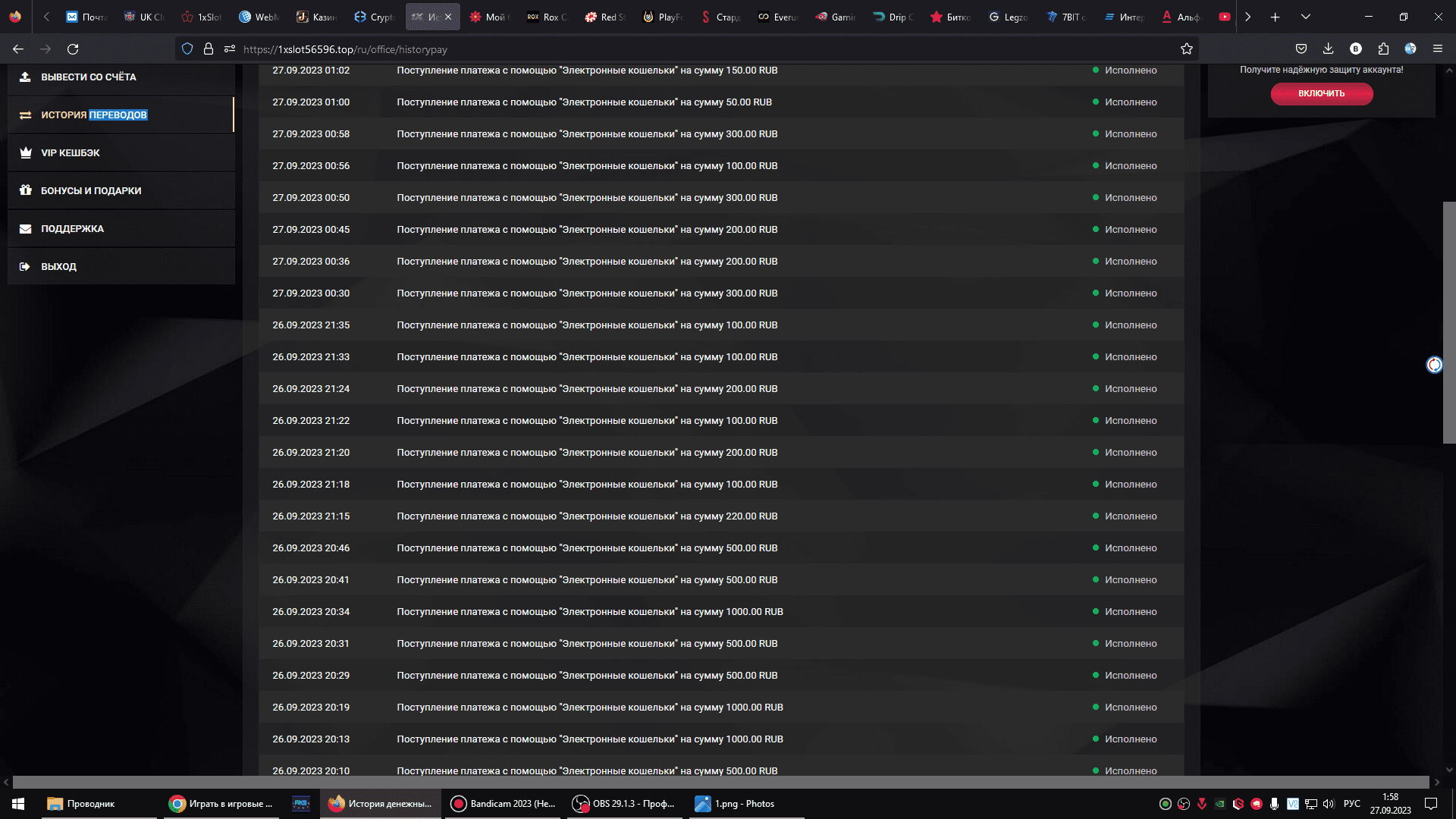 Было время покатать и я заметил что упы.р..ь.ки временно так открутили «щедрость»по моему аку и систему поставили чтобы немного давала.специально проверил.Вывел 23600 и завел обратно 27 к)))Далее испытывать систему этих ……….. бесполезно.После первого же вывода они мгновенно откручивают «щедрость «!то есть отдачу по аккаунту и вам не выиграть уже Никогда и нипочему!Это электроника и это Скам!Это есть мошеннический игровой типа сайт от брянских недолюдей 1 икс бет и он же 1 икс слотс для вида он лайн типа казино.Даже поставив мне временно отдачу )))после вывода упыри быстренько ее скрутили и все.там еще на балансе было 24.Вообщем с 49 к я ставка за ставкой слил все в ноль.далее бесполезно продолжать.это дно.нЕ ИГРАЕМ НИКОГДА И ПРОХОДИМ МИМО!За вас за всех я провел тест за свои бабки !как всегда!)))( к слову 22-23 к Это вообще у них СВЕРПРЕДЕЛ по выводу в этом дне.Обычно в виде исключения столько дают!))))))))При этом надо столько же или в 2 раза больше или три залить!Вообщем делаем выводы.Также подзаписал ночь игры в слоты у них!Которые есть Мертвые от слова всегда!Разве 5 тысяч раз в 10 часов и могут насыпать вас)))после залива ВАМИ СОТНИ))))К НАПРИМЕР!Кому нужно тут же вышлю видео по личности в личке.думаю хватит на долго .треть винтаря забил с ночи)))