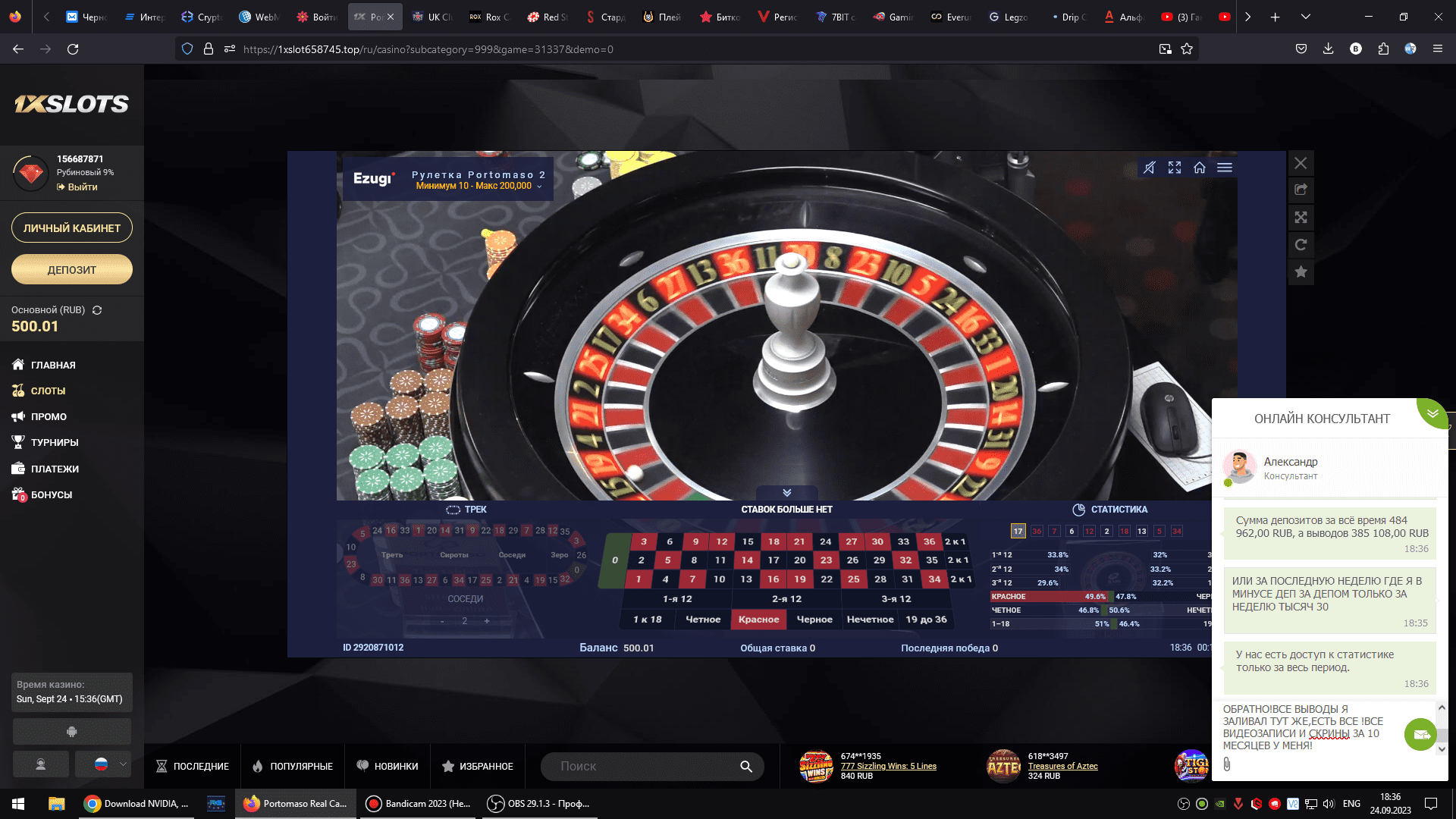 Также как пример считайте данный пост по 1 икс слотсу этому как пример доказательства ДАВНО ОБСУЖДАЕМОЙ ТЕМЫ СРЕДИ НАС ,как после вывода в он лайн казино(и не только данного, а именно на его примере!)игрок не сможет начать полноценную игру,пока не вернет в казино ОБРАТНО всю сумму вывода ,а может и в два раза больше(согласно системным настройкам по аккаунту и казино)в противном случае система будет автоматически сливать игрока как минимум пока он не вернет в кассу казино то,что вывел и не зальет именно столько или плюс немного больше.Как видите я вывел 23600 рублей и залил 31 уже обратно ,но система их продолжаем убирать меня в ноль ставка за ставкой и депозит за депозитом.Воспринимайте данную информацию как пример подтверждения данного утверждения. В Казино, в котором вы вывели деньги,уже нельзя продолжать играть как минимум недели две и не меньше.Иначе система сольет вас в минус автоматически и с этим ничего нельзя сделать! (Как бы тут сам наш Друг,ассессор и менеджер Айдар смайлы смеющиеся не ставил и не иронизировал(он то об этом 100 процентно знает!))(ТЕМ БОЛЕЕ что данное незаведение он лично рекомендовал и рекомендует как асессор)но так как есть личная заинтересованность как пример недавнее(