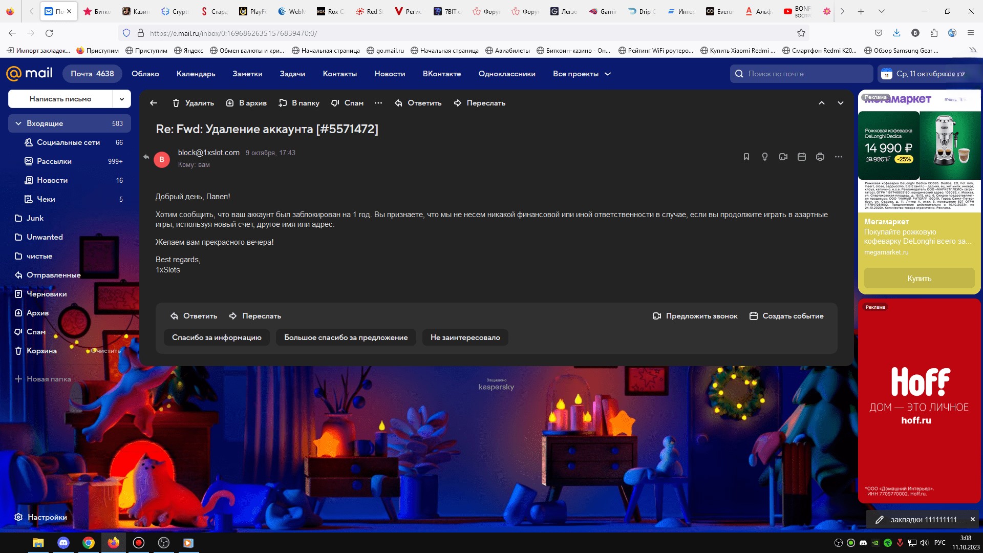 Активировать до 26.10.2023. Три дня на отыгрыш.