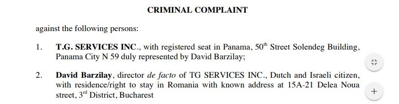 Как одно из подтверждений того, что David Barzilay имел непосредственное отношение к TopGame, указывается уголовная жалоба, направленная в адрес главного прокурора Румынии. В этой жалобе обидчиками указаны T.G. Services Incs (владелец TopGame), а также непосредственно David Barzilay, который являлся владельцем и директором компании.