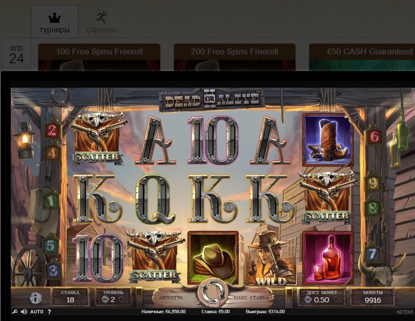 Поглядел через турнир на этот слот «ДоА2», за первую сотку спинов были разные выигрыши… При максимальной ставке 9Е самый крупный выигрыш был 54Е(это был первый за 40 спинов, а потом были разные 5, 15, 18, 25, 45). А как завалило за сотку спинов словил три скаттера а выигрыш составил 3К, играл флЭтом.